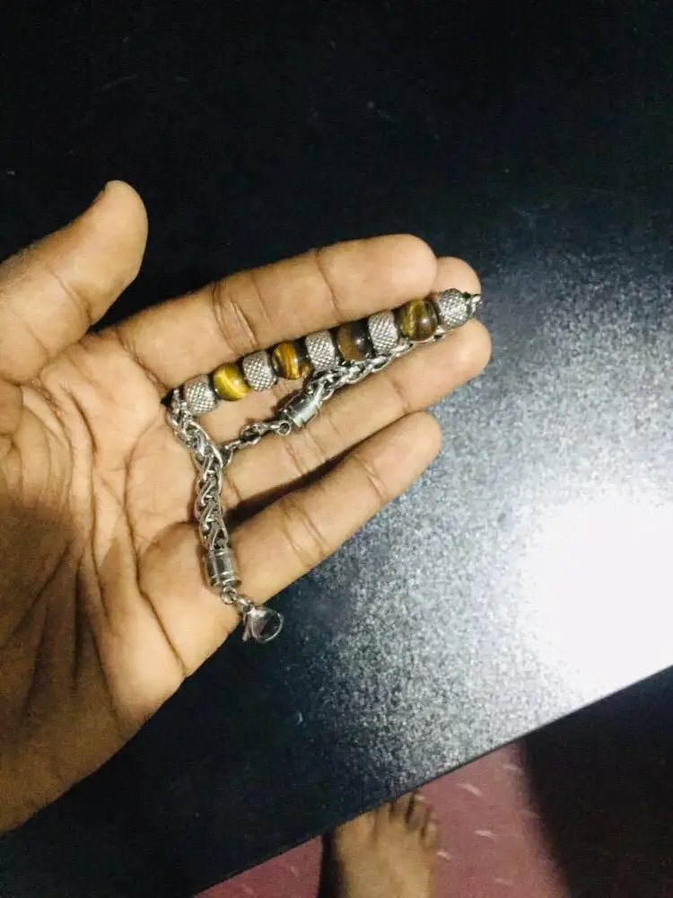 Bracelet acier avec des perles minérales en pierres fines pour homme, livraison sous 48 heures.